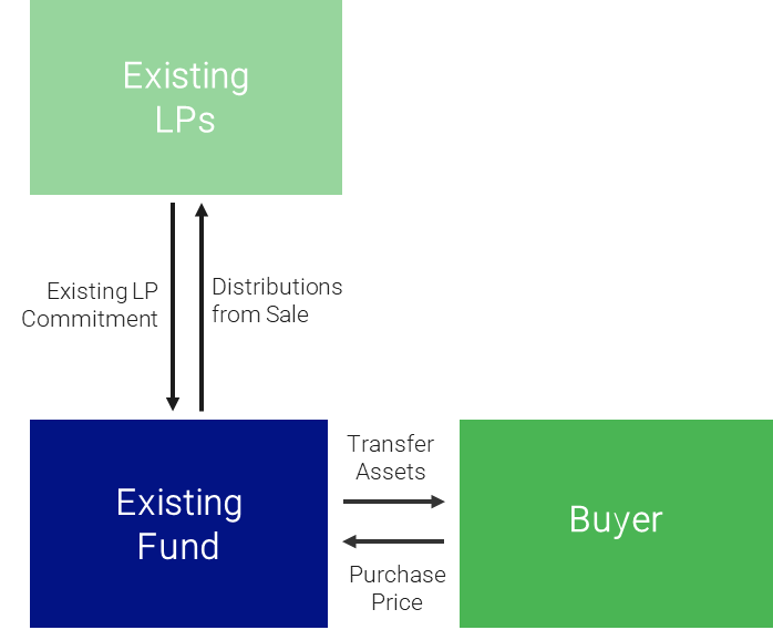 GP finds a buyer for the remaining asset(s) in the fund, allowing the fund to fully liquidate; assets are transferred directly to buyer(s)