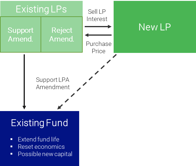 • LPs who need liquidity can sell their interests and LPs with longer time horizons remain in the fund